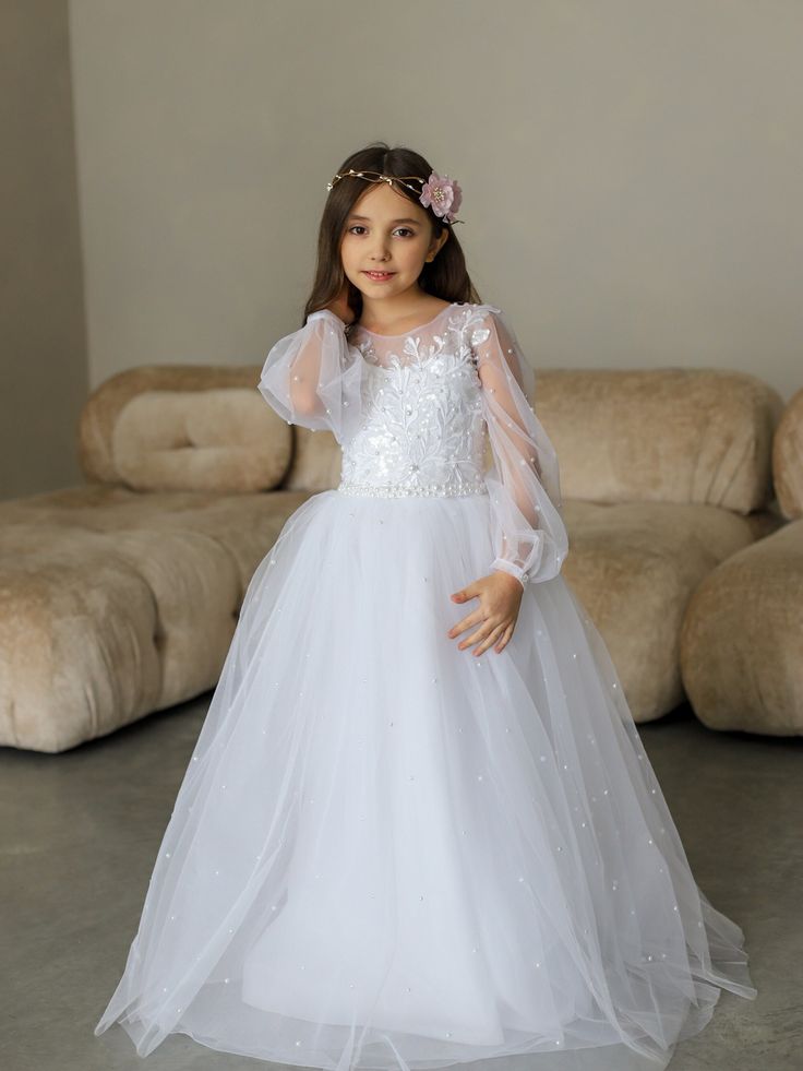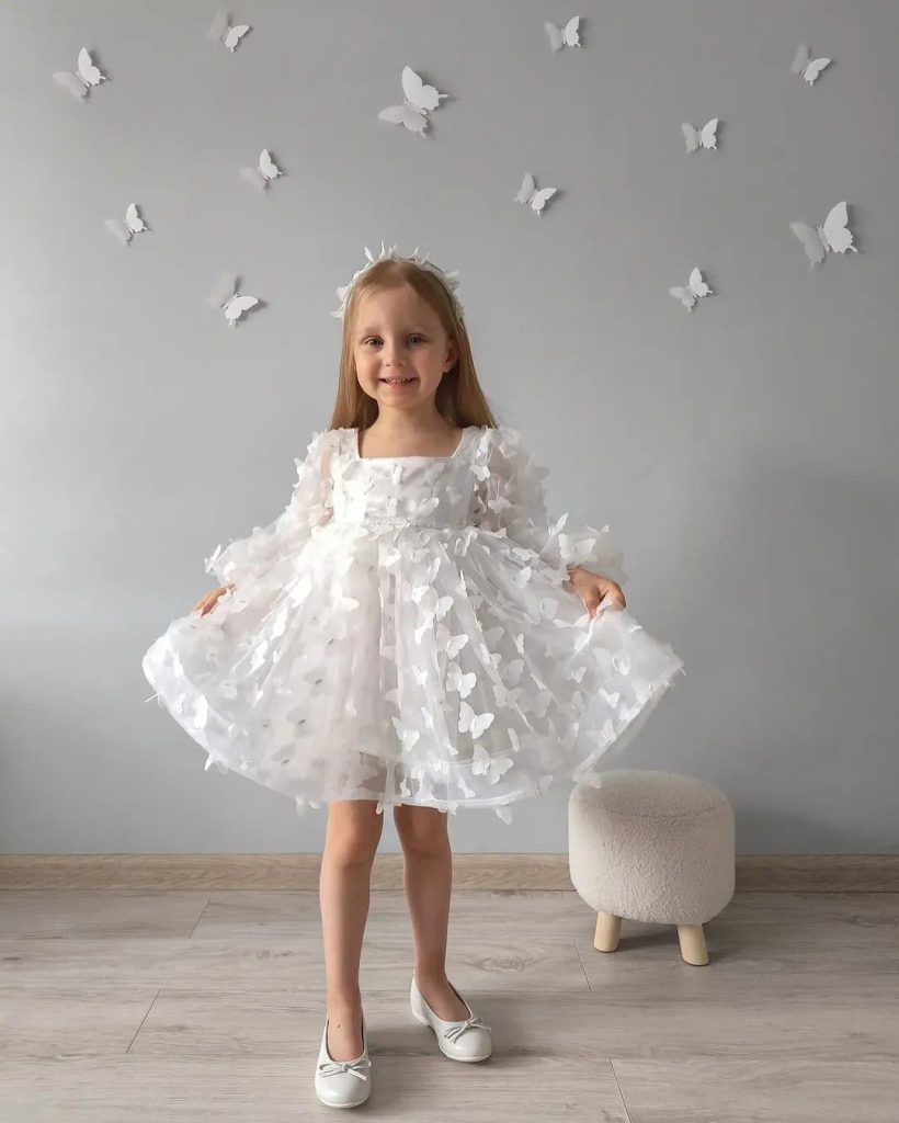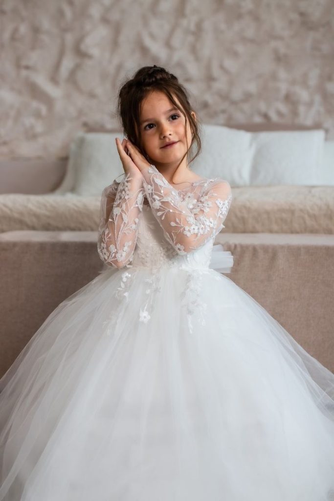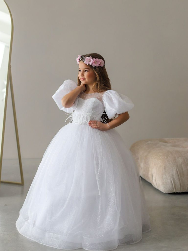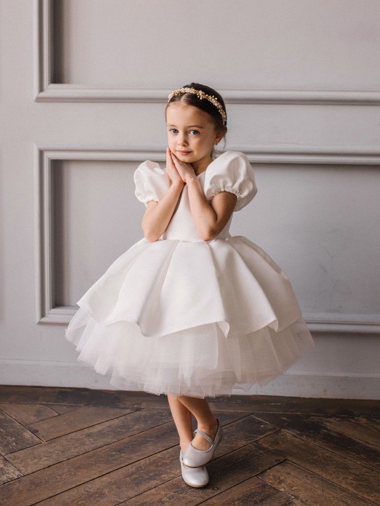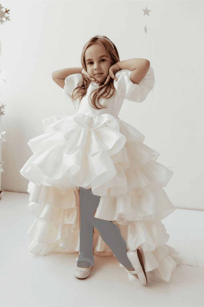 - پفی سبک (Ballgown ملایم): برای مراسم شب و عکسهای رسمی؛ حجم دامن کنترلشده تا کودک خسته نشود.