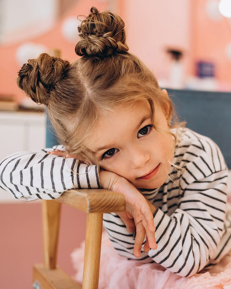 بافت مو همیشه محبوبترین مدل برای دختربچههاست. بافت سادهی دوتایی، بافت هلندی، بافت قلبی یا حتی بافت به شکل ستاره، هرکدوم میتونه یه استایل خاص بسازه. علاوه بر اینکه قشنگه، باعث میشه موهاش تو بازی و دویدن بههم نریزه. بافتها رو میتونی با روبان، کشهای رنگی و مرواریدهای کوچیک تزئین کنی تا حسابی بامزه بشن.