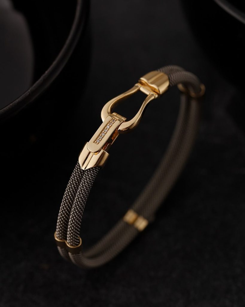 اجزا: بافت طنابی یا سهلایی، گاهی با هستهٔ فولادی و روکش طلا؛ قفل پیچی یا کلیپ. حس ظاهری: پویا و مردانه؛ تکسچر محسوس. نکته فنی: انعطافپذیری بالا و مقاومت خوب در استفادهٔ روزمره.