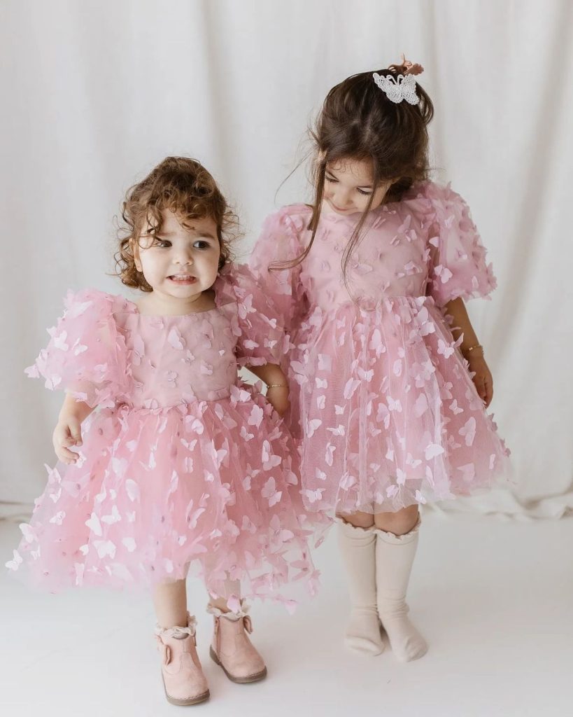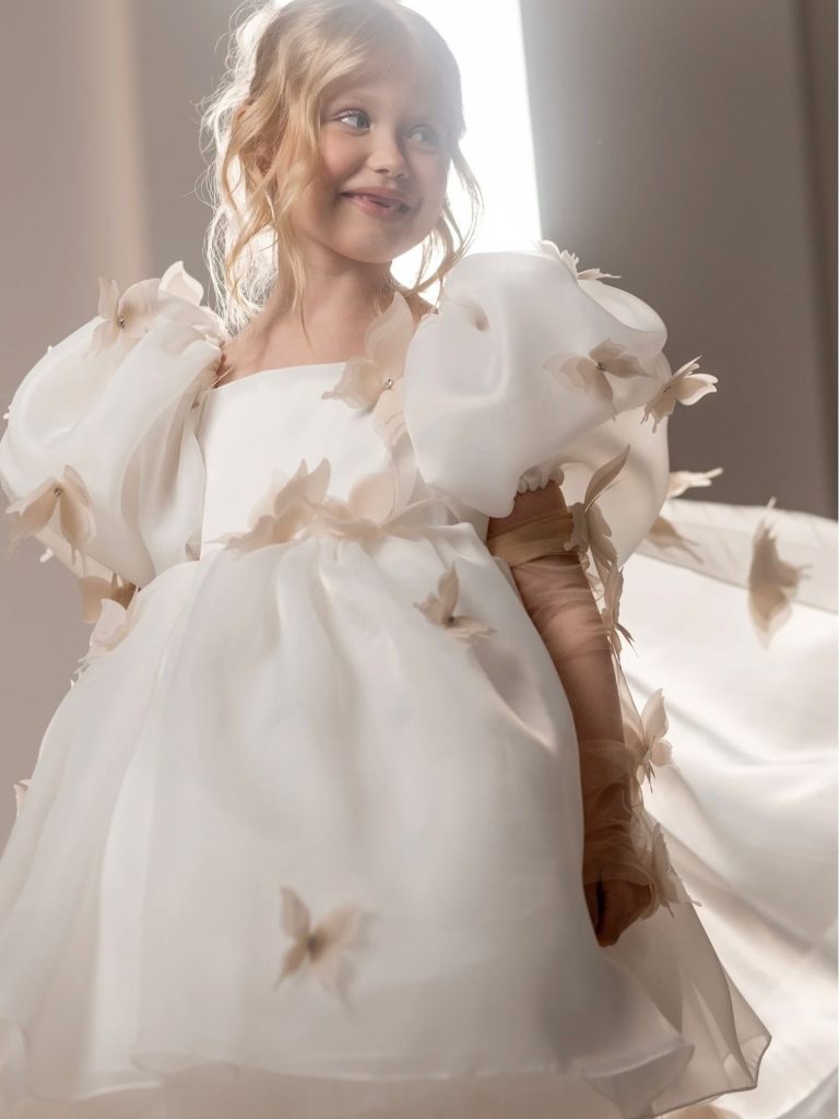لباسهای با طراحی پروانهدار نیز یکی از ترندهای داغ در لباسهای مجلسی بچگانه دخترانه برای سال 2025 هستند. پروانهها با شکل و رنگهای جذاب خود، ظاهری شاد و خاص به لباسها میدهند و از آنجا که میتوانند در هر نقطه از لباس قرار بگیرند، به راحتی میتوانند لباسی ساده را به یک استایل منحصر به فرد تبدیل کنند.