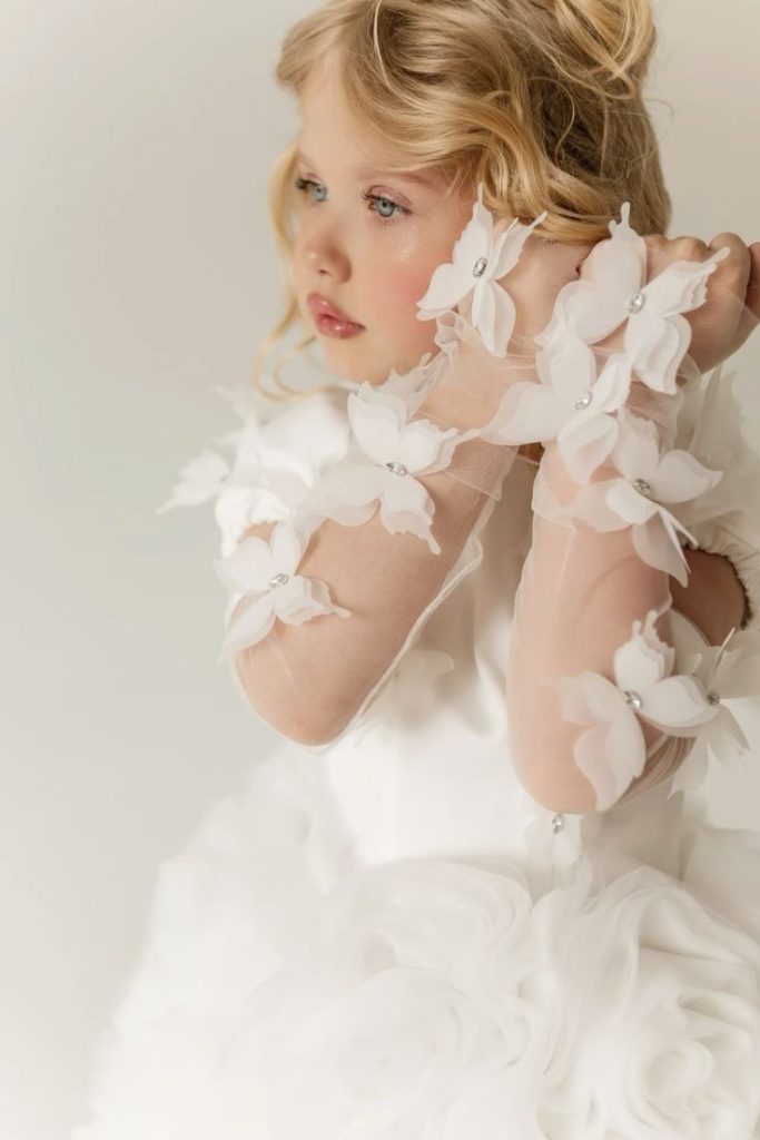 این طراحیها علاوه بر اینکه لباسها را جذابتر و متفاوتتر میکنند، حس خاص بودن و باکلاس بودن را در لباس ایجاد میکنند. استفاده از پروانهها به عنوان تزیینات نه تنها به لباس زیبایی و شیک بودن میدهد بلکه به یک استایل رویایی و منحصر به فرد تبدیل میشود که توجه هر کسی را جلب میکند. این ترند محبوب در لباسهای مجلسی بچگانه دخترانه 2025 یکی از گزینههای اصلی برای افرادی است که به دنبال ظاهری خاص و جذاب برای جشنها و مهمانیها هستند.